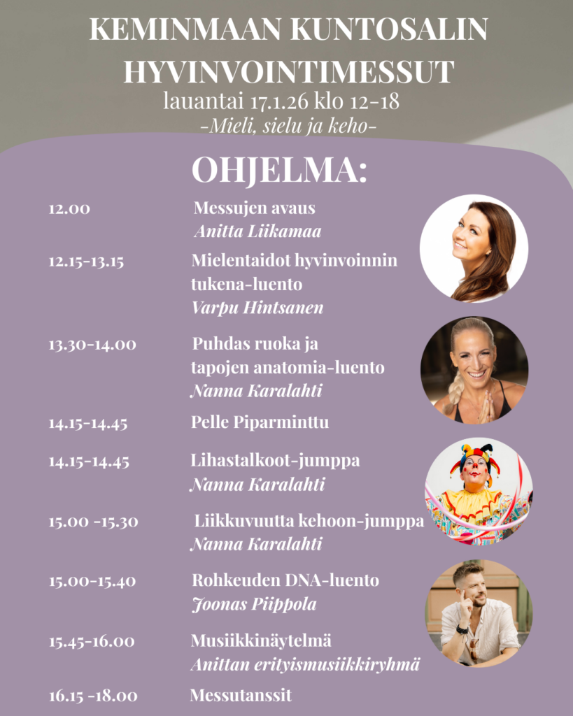 KEMINMAAN KUNTOSALIN HYVINVOINTIMESSUT la 17.1.2026 klo 12-18